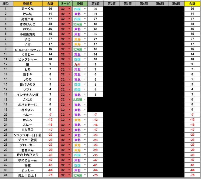 上の画像が第1節終了時の地方C2の結果です。