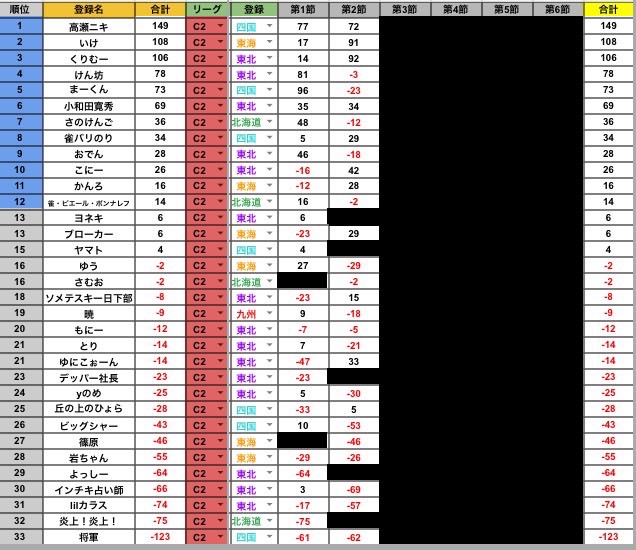 あとそんなに重要な話ではないけども、東海の面子が自分より上位に現状では1名しかいないので、「東海勢を叩こう!」という意識は必要なさそうです。